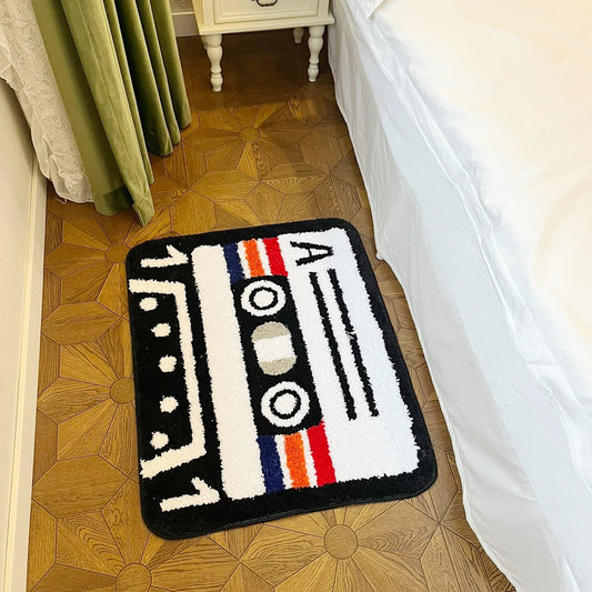 White and Black Tufted "Retro Cassette Tape" Rug