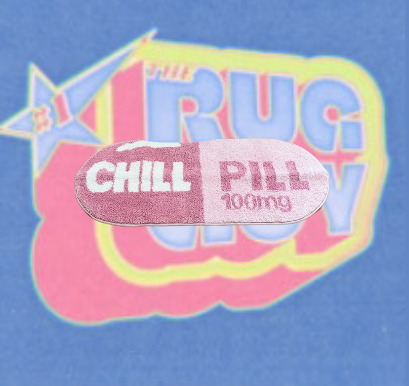 The tufted "Chill Pill" design, with its pink and white color scheme, turns your space into a haven of modern sophistication and lighthearted charm. Imagine this rug transforming your home decor – a focal point that not only adds a touch of style but also serves as a delightful homage to the concept of taking it easy.