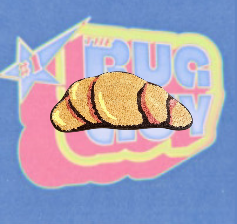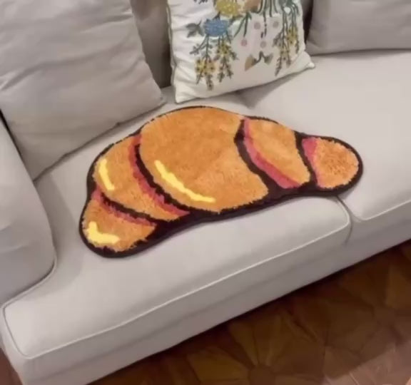 Designed for those who appreciate the quirky and whimsical, this tufted rug features a vibrant orange and black color scheme with a meticulously crafted croissant design. Let this rug be a statement piece that adds a touch of lighthearted charm to your room, creating a space that's both cozy and full of personality.