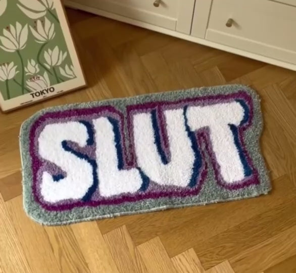 Introducing our Purple and White Tufted "SL*T" Quote Rug – a striking addition to your space that exudes confidence and contemporary style. Crafted with high-quality 100% polyester, this rug not only offers comfort but also durability, ensuring it stands up to the test of time with a soft, luxurious feel underfoot.
