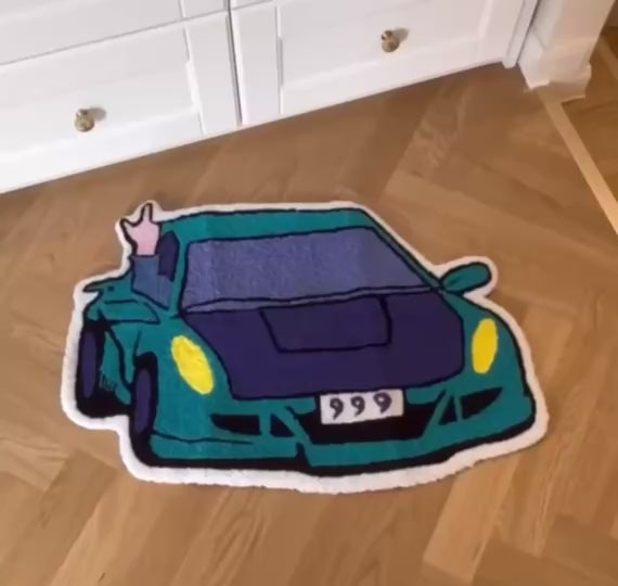 Measuring a versatile size, this rug is perfect for individuals who are fans of JUICE WRLD's music, those with an appreciation for bold and dynamic decor, or anyone looking to add a touch of urban flair to their living space. The tufted design, with its striking blue and purple hues and a depiction of the iconic 999 Car, turns your space into a tribute to the late artist's distinctive style.