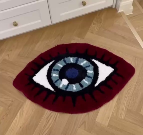 Introducing our Tufted Red and Blue "Evil Eye" Rug – a captivating and mystical addition to your space that brings a touch of ancient symbolism and modern style into your home. Crafted with high-quality 100% polyester, this rug offers more than just comfort – it promises durability, a soft, luxurious feel underfoot, and a burst of protective charm that captures the essence of the Evil Eye motif.