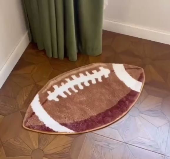 Elevate your space with our modern tufted American football rug in brown and white. Crafted with precision, this rug adds a touch of athletic charm to any room. The classic brown and white design pays homage to the iconic American football aesthetic, making it a perfect accent for sports-themed spaces or man caves. Whether placed in a game room, bedroom, or living area, this rug is sure to impress sports enthusiasts and elevate your interior decor. Score style points and bring gridiron glamour to your space with our tufted American football rug today!